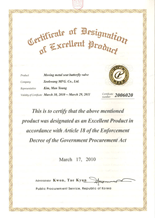 | Certificate of Designation of Excellent Product |